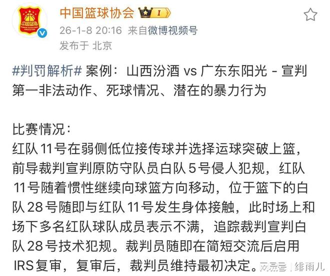 從比賽過程來看,天津隊一度領先山西隊兩位數(shù)。但是,山西隊主場在第四節(jié)比賽中似乎得到了裁判的“保送”。最終,天津隊在一度領先的情況之下被逆轉。與此同時,此前晉粵大戰(zhàn)的裁判報告結果也正式出爐。在中國籃協(xié)的官宣之下,山西隊外援迪亞洛對于廣東隊新人陳家政的肘擊犯規(guī)也終于真相大白。據(jù)悉,中國籃協(xié)確認了在此前的晉粵大戰(zhàn)中,山西隊外援迪亞洛肘擊廣東隊的新星陳家政是違體犯規(guī)。這次犯規(guī)導致陳家政受傷到底久久不能緩過來,而廣東隊主教練杜鋒更是申請了回放。