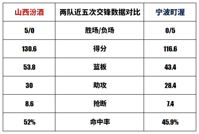 山西汾酒與寧波町渥歷史上一共交手9次,山西汾酒8勝1負(fù)。上賽季兩隊(duì)交手2次,山西汾酒2勝0負(fù);本賽季兩隊(duì)交手1次,山西汾酒1勝0負(fù)。