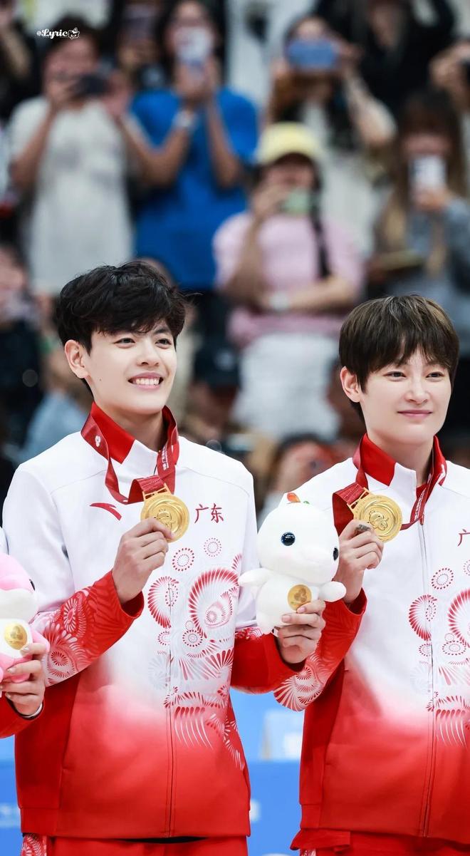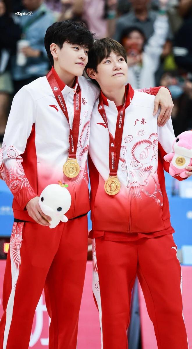 頒獎儀式上,她們不約而同地摘下金牌,一起掛在趕來現(xiàn)場的母親脖子上,輕輕親吻母親的臉頰,那份對母親的感激和對父親的思念,盡在不言中。