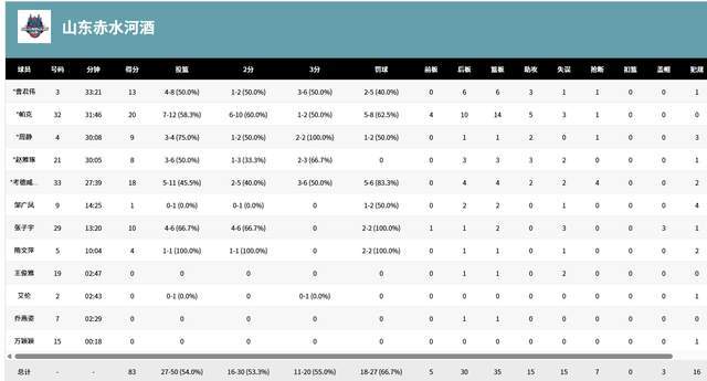 山東女籃能拿下這場勝利,全靠手感好,三分球20投11中,命中率高達55%。全隊4人得分上雙,帕克20分14籃板5助攻,考德威爾18分4籃板2助攻4搶斷,曹君偉13分6籃板3助攻,張子宇替補打了13分鐘,6投4中,2罰2中,拿到10分2籃板。