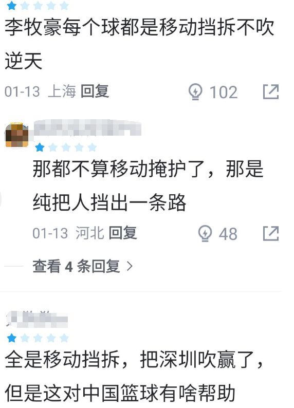其實上海爆冷輸給深圳的那場比賽,上海球迷也是相當不服氣的,怨聲很大,不少球迷在賽后瘋狂指責裁判和李慕豪,認為裁判縱容了李慕豪的多次移動掩護,才導致上海輸了比賽,甚至還有球迷說:這場裁判這么吹,美國隊來了也只能險勝深圳;國家隊有你這擋拆,早就進世界杯了。