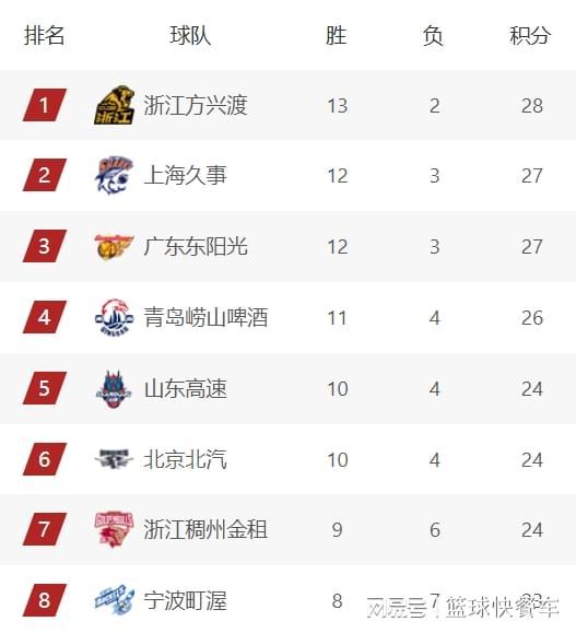 附:CBA積分榜最新排名