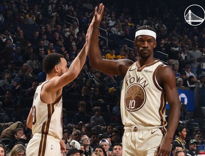 庫里則只有3.7,波杰姆斯基2.6,穆迪1.8。而對應的防守BPM貢獻值,庫里-0.6是隊內(nèi)倒數(shù)第二,倒數(shù)第一的是庫明加的-1.3。這三組數(shù)據(jù)列下來,我相信很多球迷和我一樣,有些不解。但實際上當下這支勇士,就相當于兩個封閉圓環(huán)在反向互拉。其中一個圓環(huán),代表著科爾圍繞庫里打造的傳切體系,格林是其中絕對核心,因為就連場邊保安都知道格林大部分傳球都給庫里,哪怕出現(xiàn)失誤。另一個圓環(huán),則是巴特勒主導,帶著波杰姆斯基+穆迪+博斯特等人,百回合能贏對手8.8分。巴特勒數(shù)據(jù)一般,但攻防都能兜底。