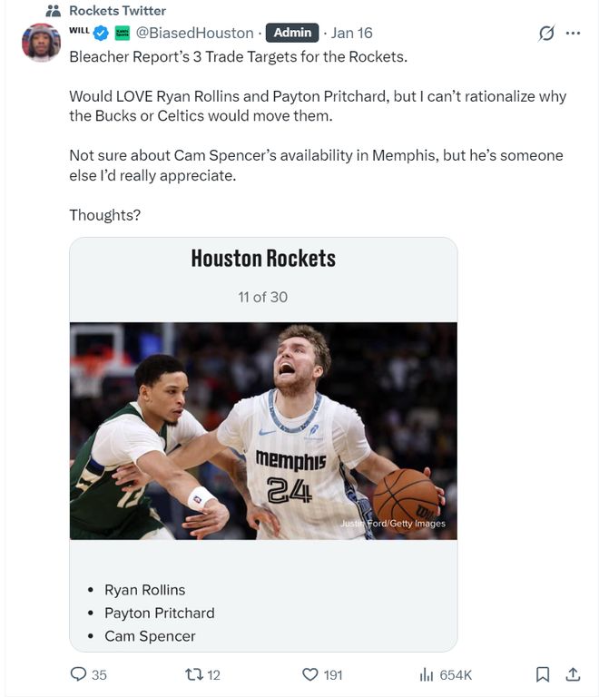 一天之前休媒Will轉(zhuǎn)推了BR的一項(xiàng)交易建議,他認(rèn)為灰熊隊(duì)的斯潘塞是火箭補(bǔ)強(qiáng)一號(hào)位的不錯(cuò)選擇,因?yàn)樗古巳贤浅5土?/p>