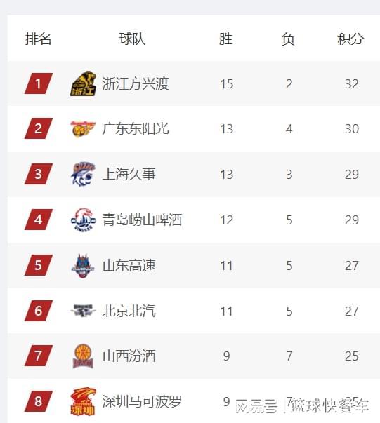附:CBA積分榜最新排名