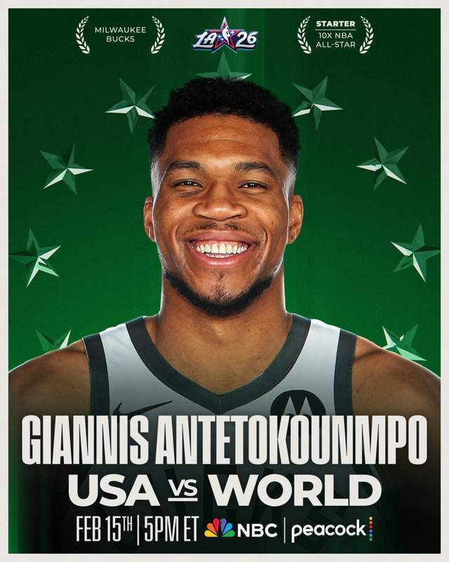 字母哥成為東部全明星首發(fā),他是東部得票最高的球員。這是他生涯第10次入選全明星,也是連續(xù)第10年入選。賽季至今, 字母哥場均28.8分9.5籃板5.5助攻。