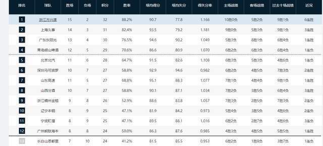 CBA最新排名!上??駝俦本⒒氐?,黑馬逼近前四,遼寧跌至第10