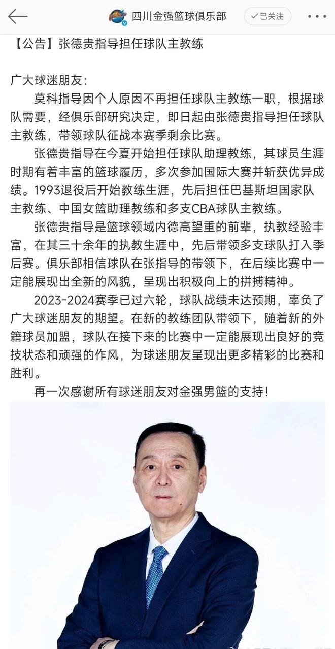 值得一提的是,張德貴不是第一次扮演“救火教頭”。 2021年他接替外教凱撒執(zhí)教天津隊時,就曾帶領(lǐng)球隊時隔8年重返季后賽。