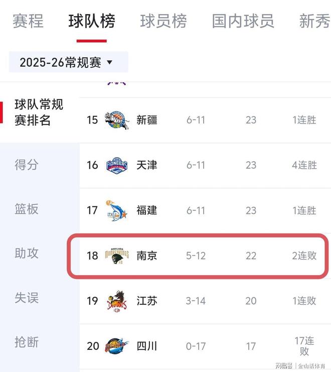 值得一提的是,本賽季開打前,南京同曦官方社媒公示,球隊原主帥貝西洛維奇由于家庭原因主動辭職,原助教、前浙江隊主帥王世龍接替成為球隊新任主教練。然而,王世龍接過教鞭后,并沒給這支“青年軍”帶來改變,球隊反而在開賽后一路走低,遇強則弱,遇弱不強,打誰都費勁吧啦,截止目前,同曦隊以5勝12負的慘淡戰(zhàn)績,排名積分榜倒數(shù)第3位。
