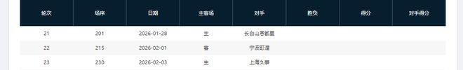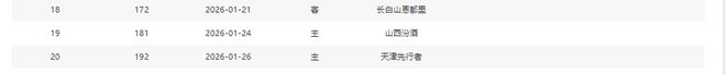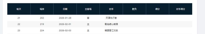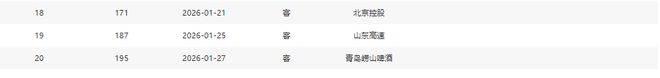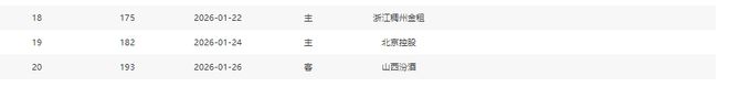 分別是客戰(zhàn)吉林(暫居第13)、主場(chǎng)戰(zhàn)山西(暫居第8)、主場(chǎng)戰(zhàn)天津(暫居第16)、主場(chǎng)戰(zhàn)吉林(暫居第13)、客場(chǎng)戰(zhàn)寧波(暫居第11)、主場(chǎng)戰(zhàn)上海(暫居第2)