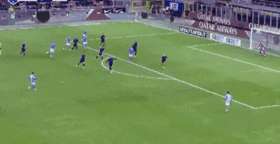 比賽開始后,那不勒斯率先發(fā)動進攻,索默一如既往的穩(wěn)定。第9分鐘,國際米蘭打出高質(zhì)量反擊,圖拉姆帶球吸引防守后傳球給迪馬爾科,后者在左邊路能攻善守,這次面對米林科維奇,小角度勁射將球打進。1-0!