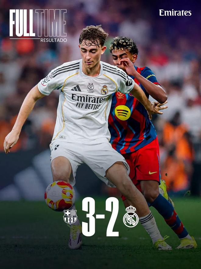 比賽結(jié)束,皇家馬德里不敵老對手巴塞羅那,憾失本季西超杯。