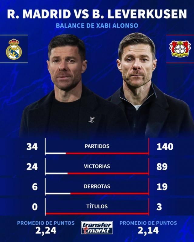 皇馬主帥阿隆索下課,德國(guó)轉(zhuǎn)會(huì)市場(chǎng)列出阿隆索執(zhí)教勒沃庫(kù)森、皇馬的數(shù)據(jù),并作出對(duì)比。