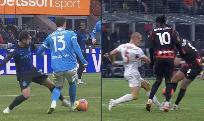 關(guān)于盛傳的那些復(fù)盤,國際米蘭對陣那不勒斯的判罰,與AC米蘭與熱那亞的判罰之間,并沒有太多相似之處。簡單來說,在第一種情況中,防守球員從未觸碰到球;而在第二種情況中,防守球員搶先于紅黑球員觸球并解圍成功。