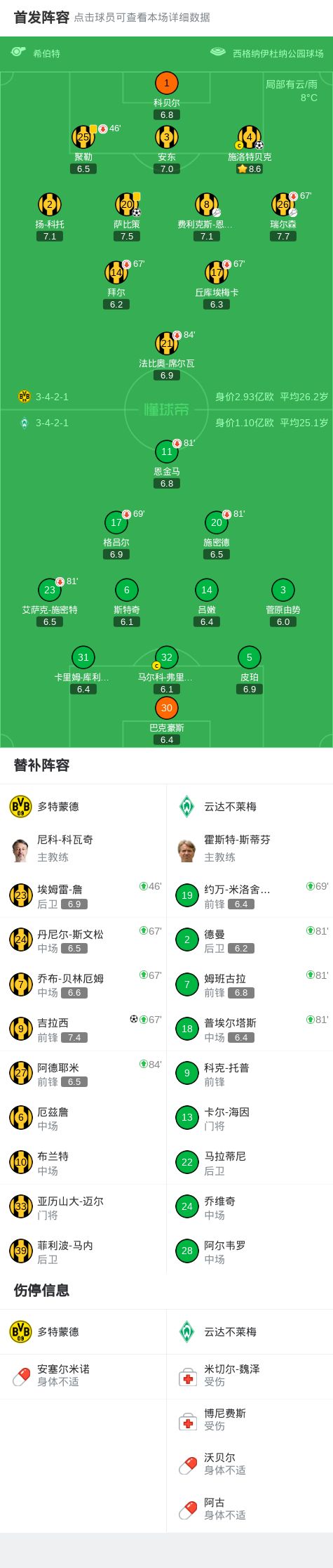 劍南春|多特3-0不萊梅,施洛特貝克、吉拉西、薩比策建功