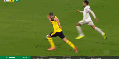 第26分鐘,小紅書丨多特后場再度失誤,不萊梅傳球被擋出