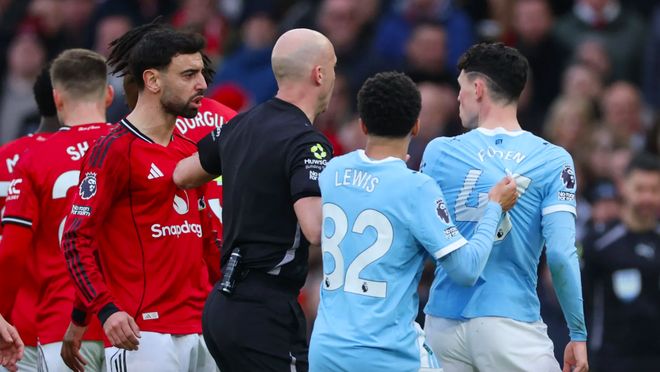 第32分鐘,羅德里的回傳力量太小,B費(fèi)搶斷后的傳球也出現(xiàn)了同樣的問(wèn)題,姆伯莫沒能碰到皮球,曼聯(lián)錯(cuò)失良機(jī)。