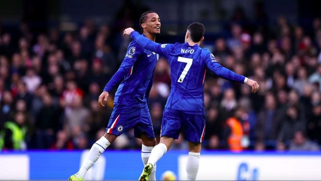 第25分鐘,切爾西前場(chǎng)丟球后迅速逼搶?zhuān)髯魯r截了后衛(wèi)的大腳解圍,若昂·佩德羅原地發(fā)力,一腳爆射將球打進(jìn)上角。