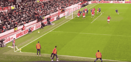 第80分鐘,替補(bǔ)登場(chǎng)的熱蘇斯擾亂森林防線,埃納禁區(qū)內(nèi)手球,VAR介入,泰勒認(rèn)定沒(méi)有點(diǎn)球。
