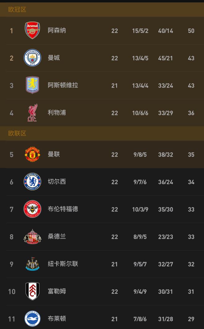 此外,曼聯(lián)和切爾西本輪取勝后,分別距離利物浦只有1分和2分,英超第4名的爭奪,也愈發(fā)激烈。