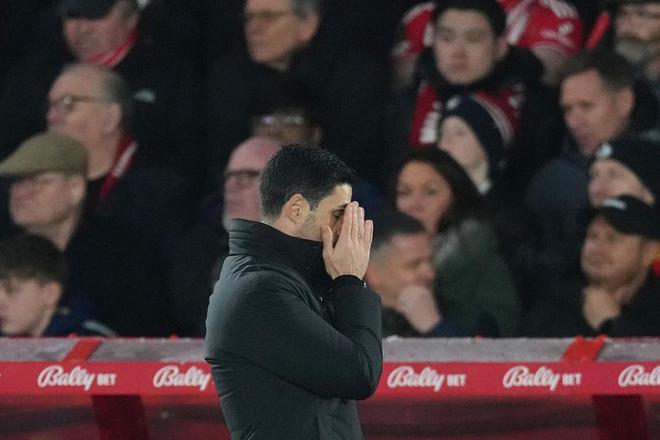 最晚登場的阿森納,同樣爆冷,客場被積分榜倒數(shù)第4位的諾丁漢森林逼平,遭遇英超2連平。22輪戰(zhàn)罷,阿森納積50分領(lǐng)跑,領(lǐng)先曼城7分。