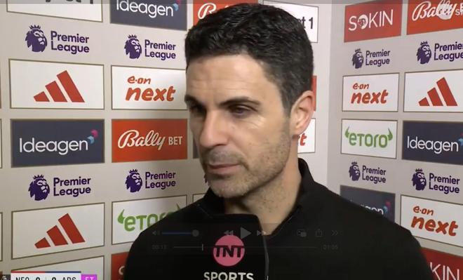 英超第22輪,阿森納客場(chǎng)0-0戰(zhàn)平諾丁漢森林,賽后,槍手主帥阿爾特塔接受了TNT體育的采訪(fǎng)。