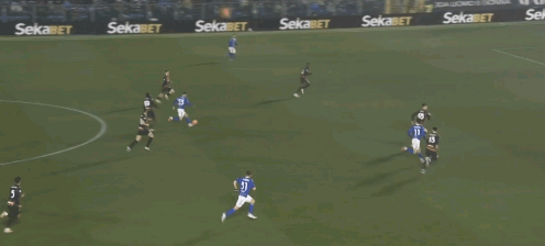 到下半時米蘭反超比分后,米蘭決定收縮陣型,對手替補(bǔ)上場的邊鋒新星羅德里格斯開始軍訓(xùn)薩勒馬克爾斯和托莫里了。