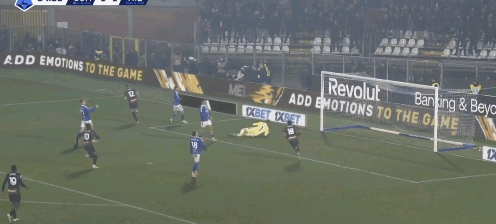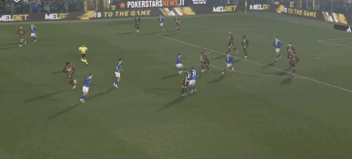 39′45″沃伊沃達(dá)右路晃開巴特薩吉后傳中,中路達(dá)庫尼亞從弗法納和托莫里之間殺出,近距離射門被麥尼昂下意識擋開并靠二次反應(yīng)破壞了補(bǔ)射。而這個熟悉的進(jìn)攻跑位套路上一場戈森斯就完成了兩次之多。