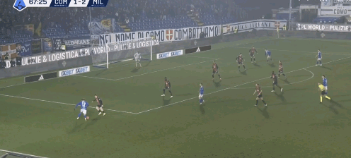科莫門將布特斯一腳直塞就讓隊(duì)友直接面對米蘭的后衛(wèi)。