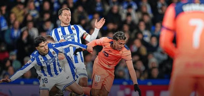 然而,面對皇家社會,巴薩還是翻車了。首發(fā)方面,費(fèi)蘭依舊出任單箭頭,此前處于競爭關(guān)系的奧爾莫和費(fèi)爾明終于得到了同場首發(fā)的機(jī)會,前者出現(xiàn)在了鋒線序列中,后者與德容、佩德里搭檔組成中場。雖說這條陣容的運(yùn)動能力不算頂級,很大程度上還要靠亞馬爾和佩德里的個人能力打開局面,但本場比賽巴薩方面的進(jìn)攻表現(xiàn)其實并不錯:25比7的射門比,預(yù)期進(jìn)球高達(dá)3.69個,弗里克預(yù)期中的戰(zhàn)術(shù)壓制力,已經(jīng)在進(jìn)攻端打出來了。