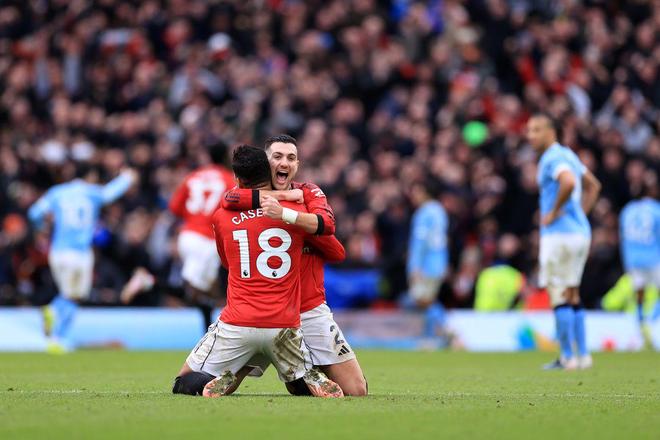 溫布利的那場比賽中,曼聯(lián)一度2-0領先,上半場行將結束時,卡塞米羅奮力逼搶喬林頓,迫使對手將球帶出底線贏得球門球。隨后,他沖到球門后的球迷區(qū)瘋狂慶祝,轉身返回球場時,又與達洛特、瓦拉內和利桑德羅-馬丁內斯逐一擊掌致意。