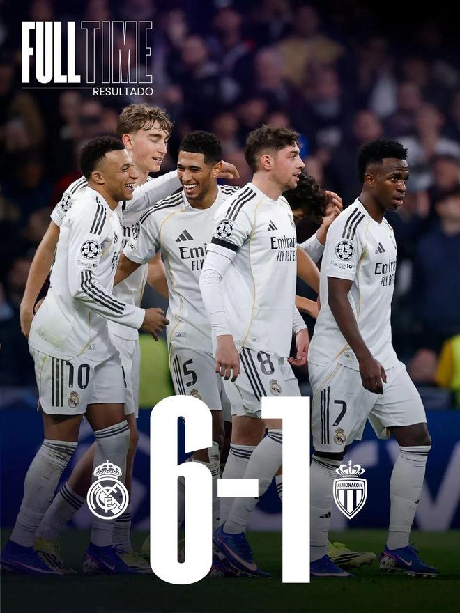 比賽結(jié)束,皇家馬德里在歐冠主場大勝摩納哥!